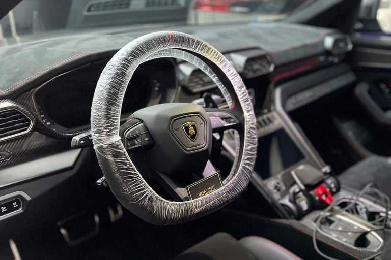 Utilizamos solo productos certificados, ecológicos y seguros para pintura, tapicería y llantas. Porque el lujo también cuida.