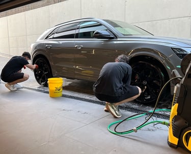 Este RS Q8 recibió nuestro detallado premium completo, incluyendo limpieza de motor, interior en piel tratada con productos específicos y descontaminación de llantas deportivas. Un SUV de alto rendimiento que volvió a lucir como recién salido del concesionario.
